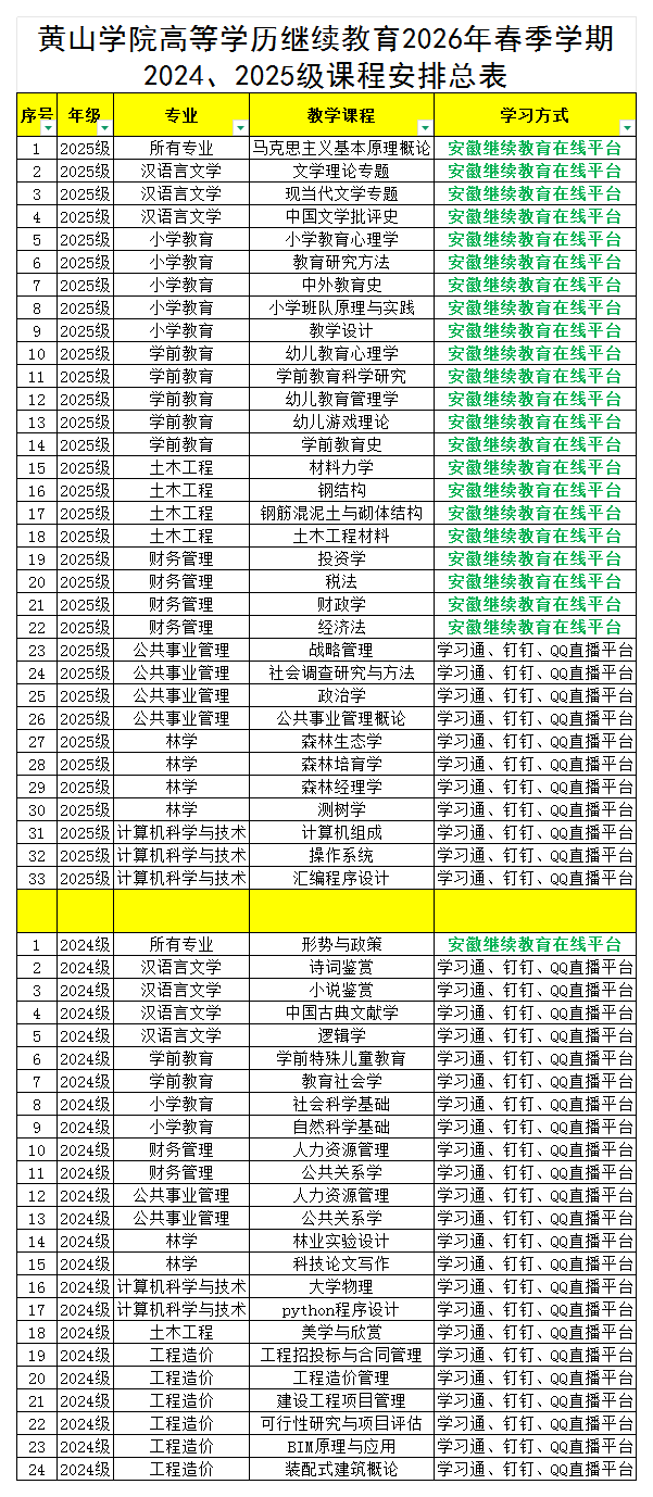 根据我校继续教育学院教学工作安排,2026学年春季学期2024、2025级课程学习已陆续开始。现将相关要求通知如下: